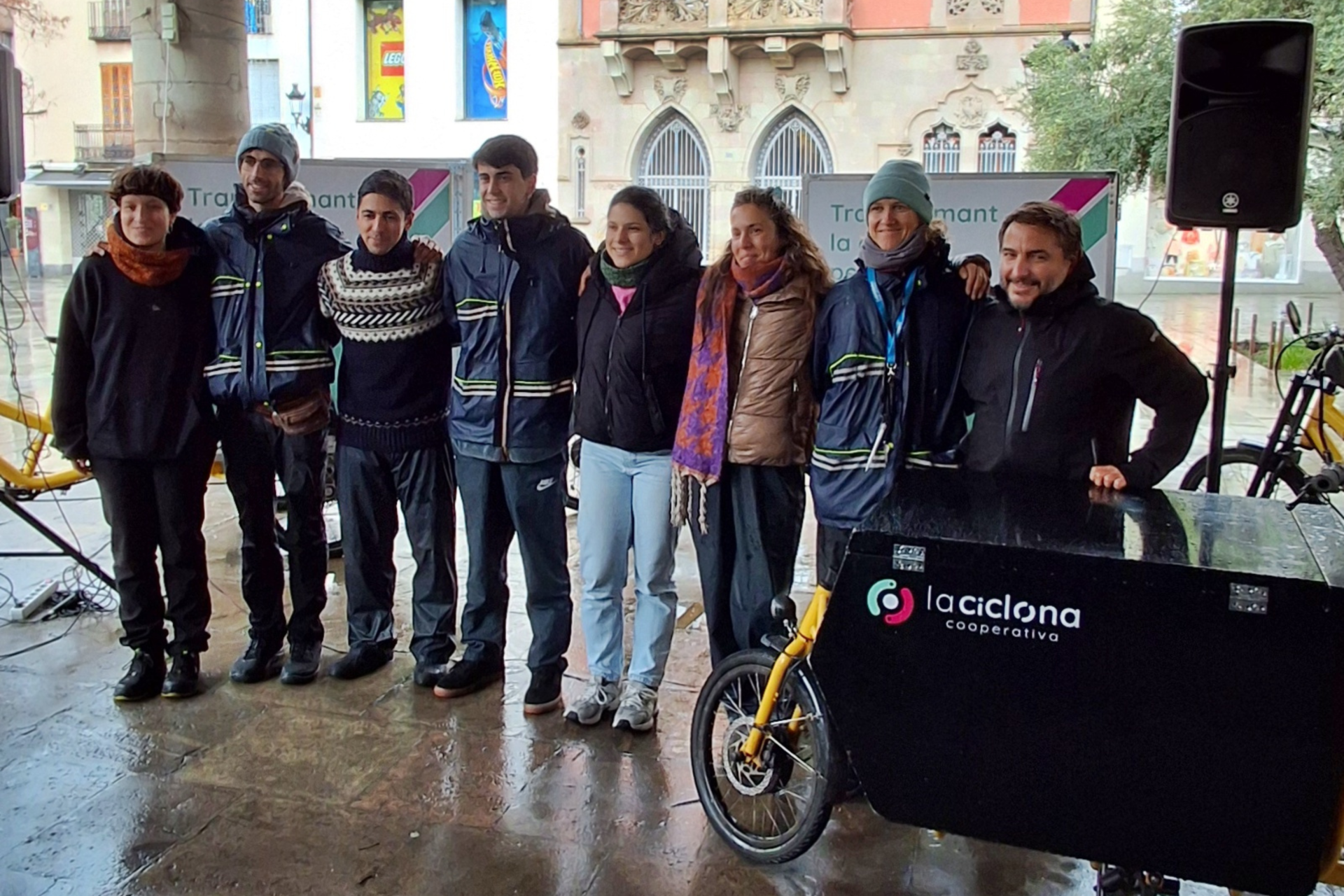 Sota l'aixopluc de la Porxada, aquest dilluns s'ha presentat oficialment la cooperativa La Ciclona, que fa uns mesos que opera a la ciutat i que ha pres el relleu a Granollers Pedala en l'àmbit dels serveis de ciclologística, amb l'impuls de quatre socis inicials –Benjamí Aguilar, Ramadasa Vázquez, Pol Baró i Esteve Capelles–, als quals ja s'han sumat mitja dotzena de treballadors.